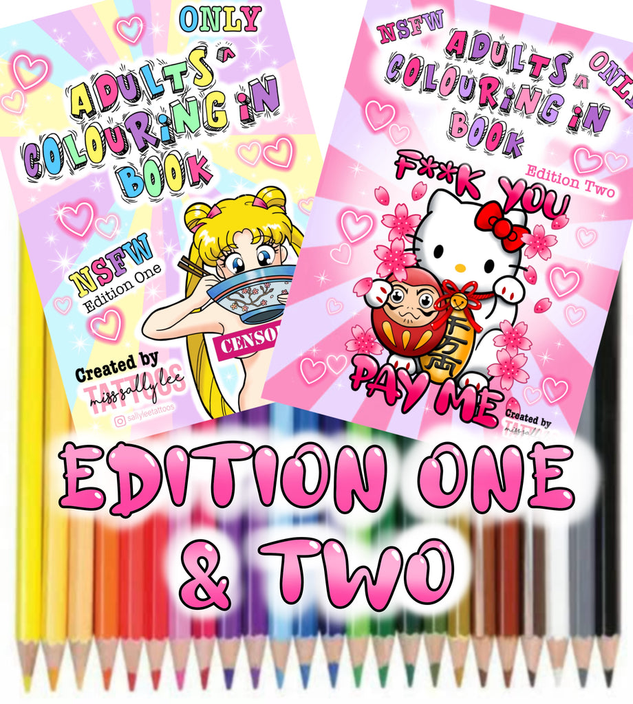Edition One & Two of Miss Sally Lee Tattoo Adults ONLY Colouring In Book